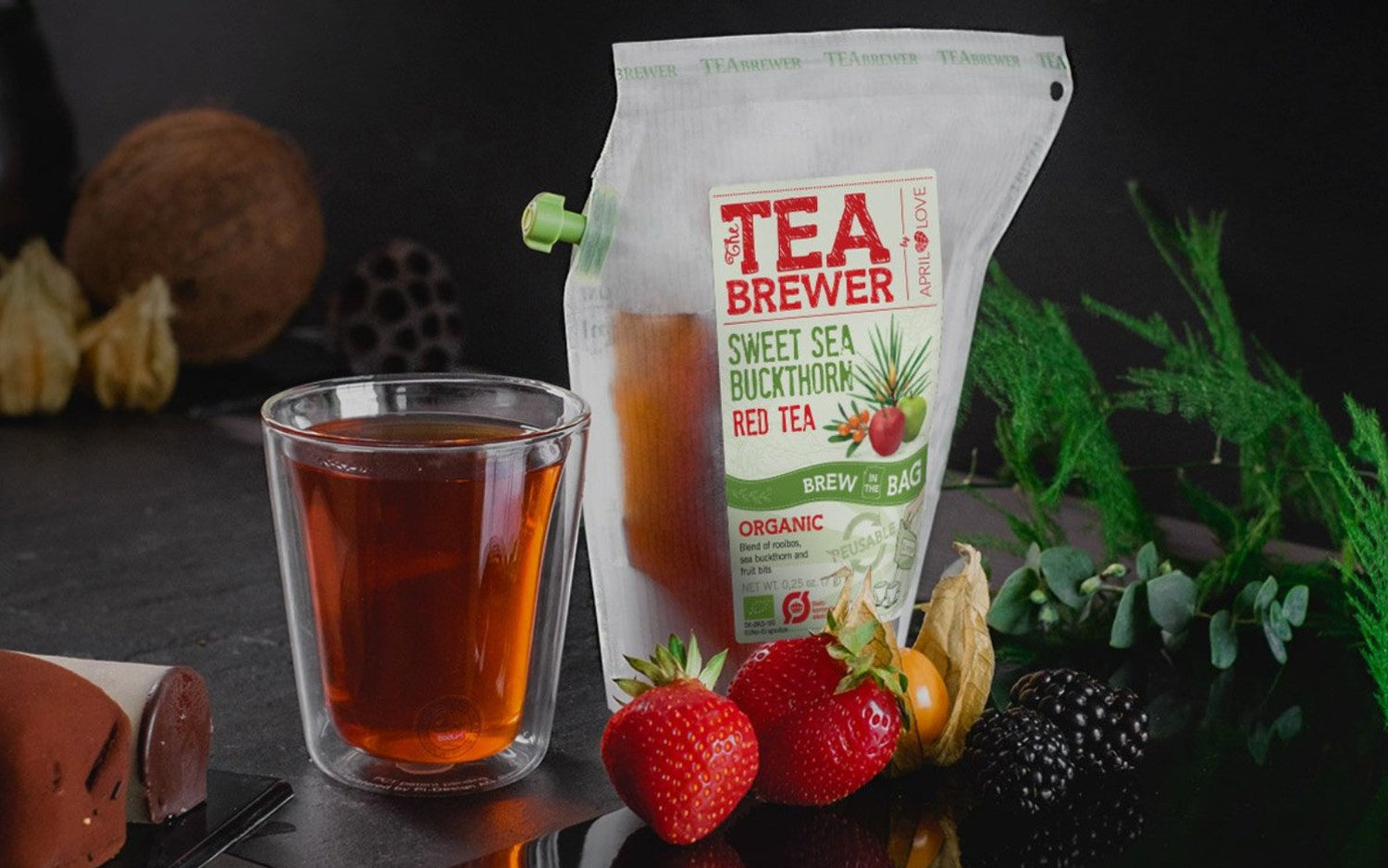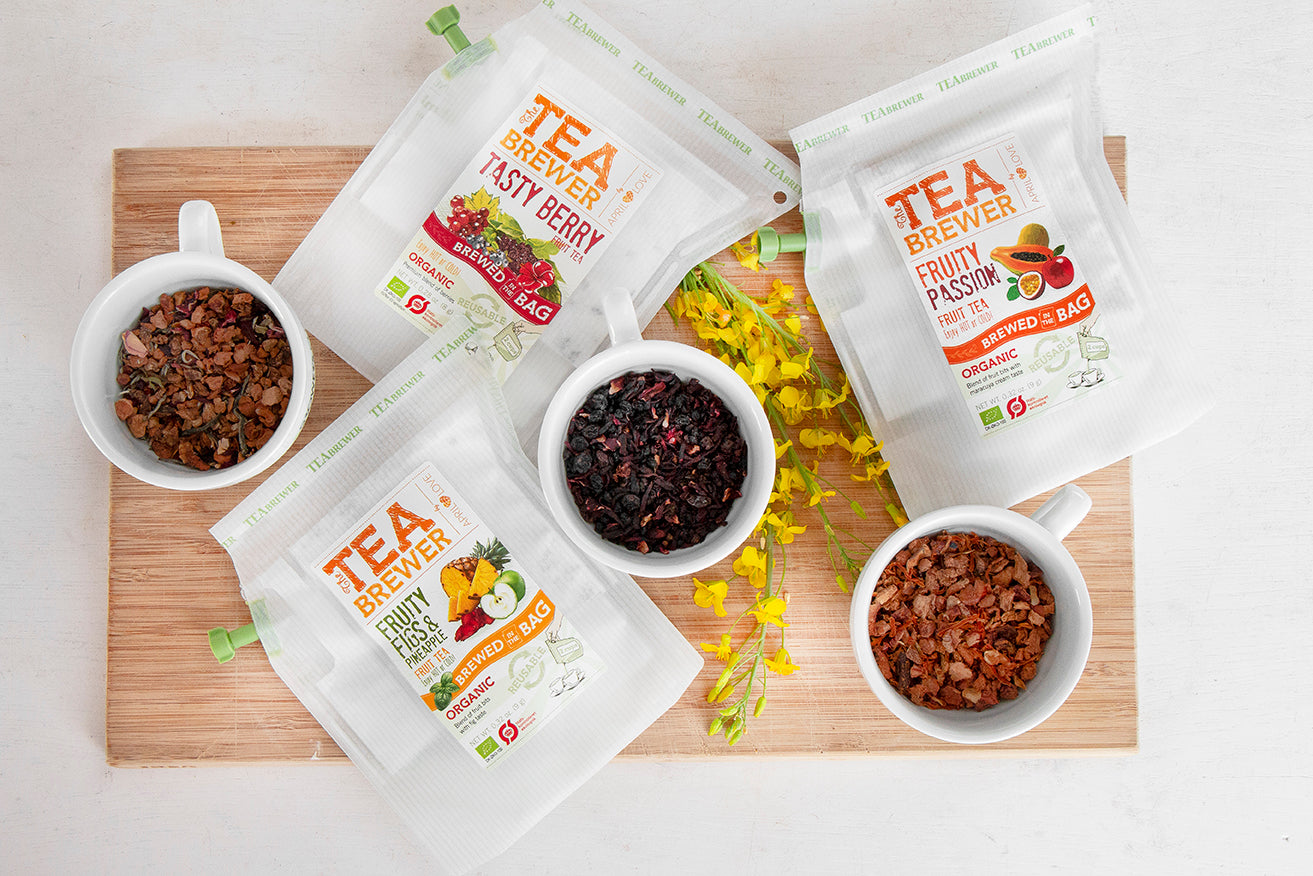 Pavyzdžiui, Teabrewer vaisinėse arbatose yra tikri džiovinti vaisiai ir uogos, o žolelių arbatose rasite tik organines žoleles, prieskonius, daržovių gabaliukus.