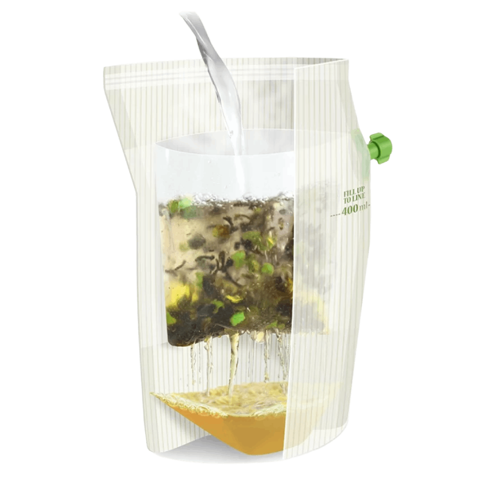 Pirmiausiai, iš pakelio išimkite panaudotas arbatos žoleles. Atsargiai išskalaukite pakelio vidų ir leiskite išdžiūti. Tuomet pripildykite pakelio vidų nauja mėgstama arbata!